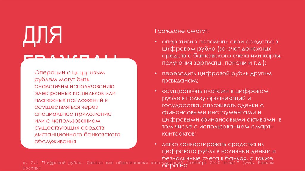 п. 2.2 "Цифровой рубль. Доклад для общественных консультаций (октябрь 2020 года)" (утв. Банком