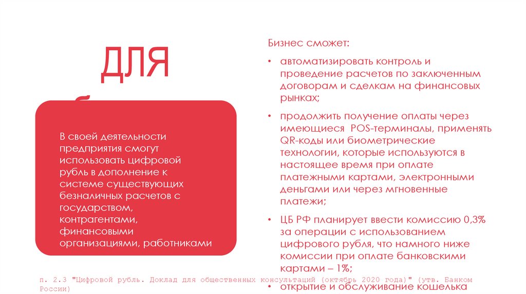 п. 2.3 "Цифровой рубль. Доклад для общественных консультаций (октябрь 2020 года)" (утв. Банком