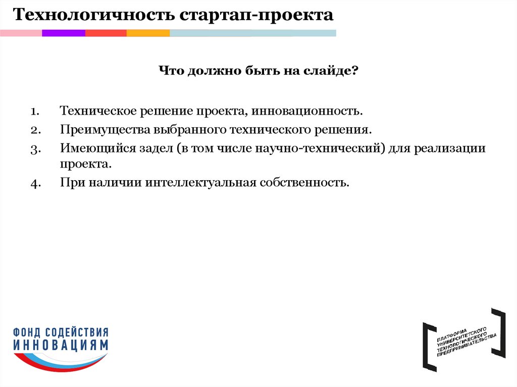 Технологичность стартап-проектаЧто должно быть на слайде?