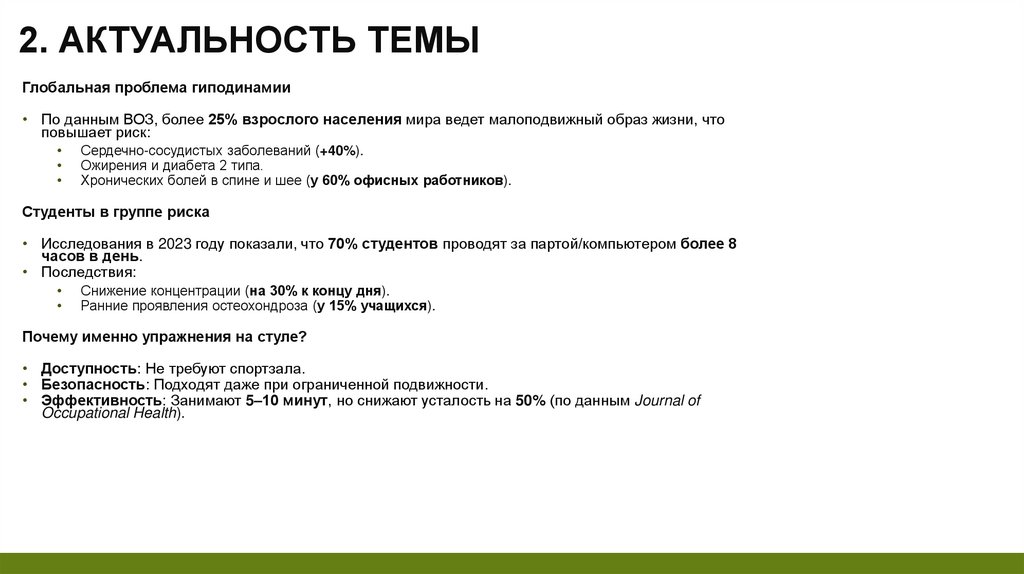 2. АКТУАЛЬНОСТЬ ТЕМЫГлобальная проблема гиподинамии