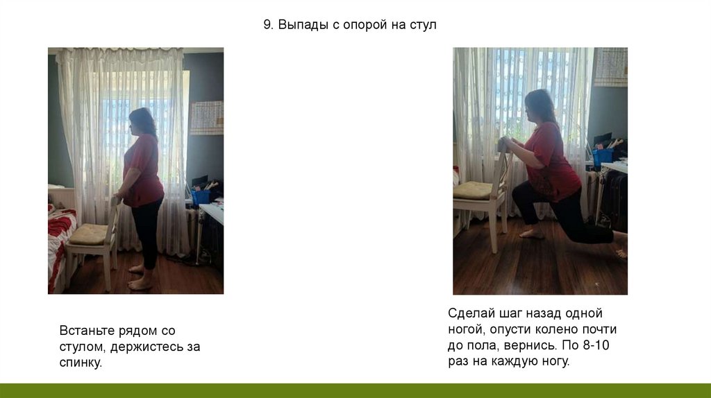 9. Выпады с опорой на стулВстаньте рядом со