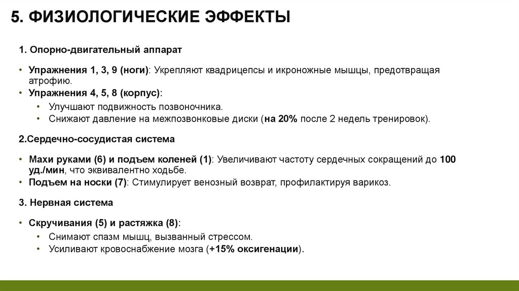 5. ФИЗИОЛОГИЧЕСКИЕ ЭФФЕКТЫ1. Опорно-двигательный аппарат