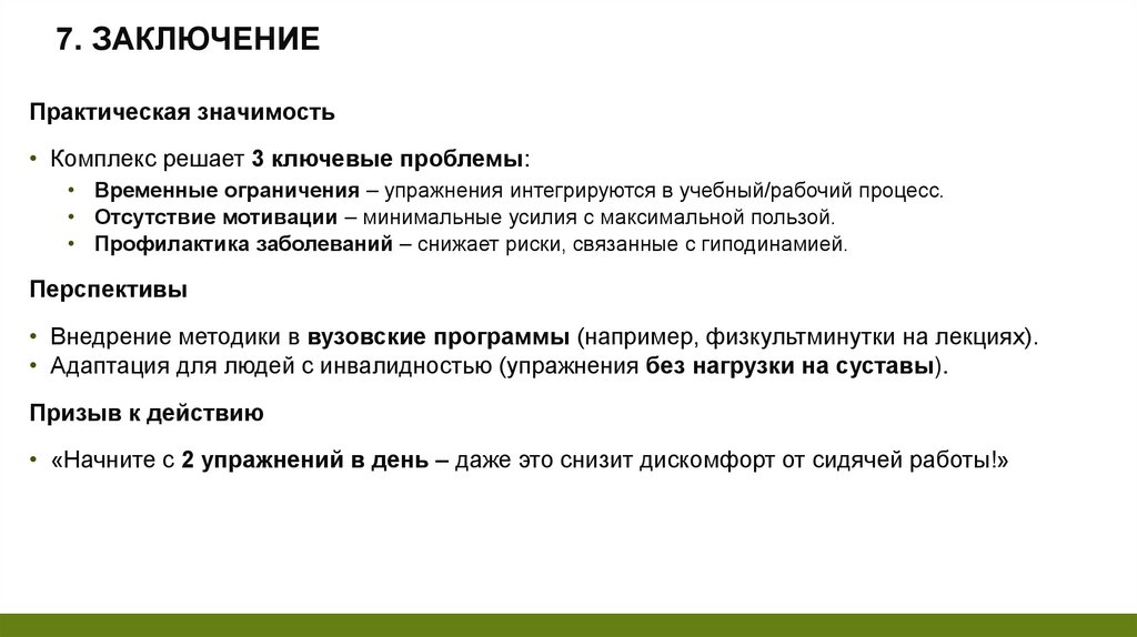 7. ЗАКЛЮЧЕНИЕПрактическая значимость