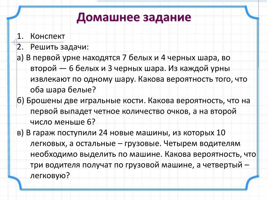 Задача 8. В классе 28 учащихся, среди них Наташа и Владик брат и сестра. Для проведения медосмотра класс случайнымобразом разбивают на 2 равные группы. Найти вероятность