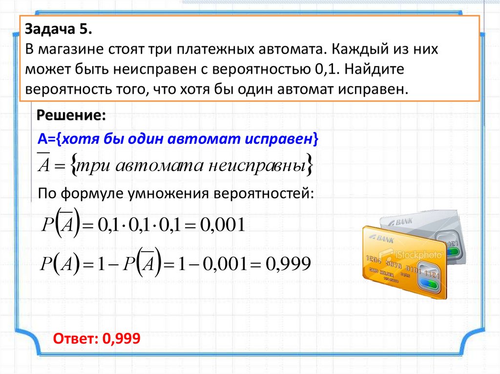 Задача 5.В магазине стоят три платежных автомата. Каждый из них