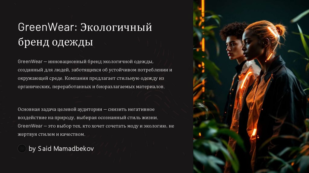 выбирай GreenWear". Мы сочетаем современный дизайн с заботой об окружающей среде,