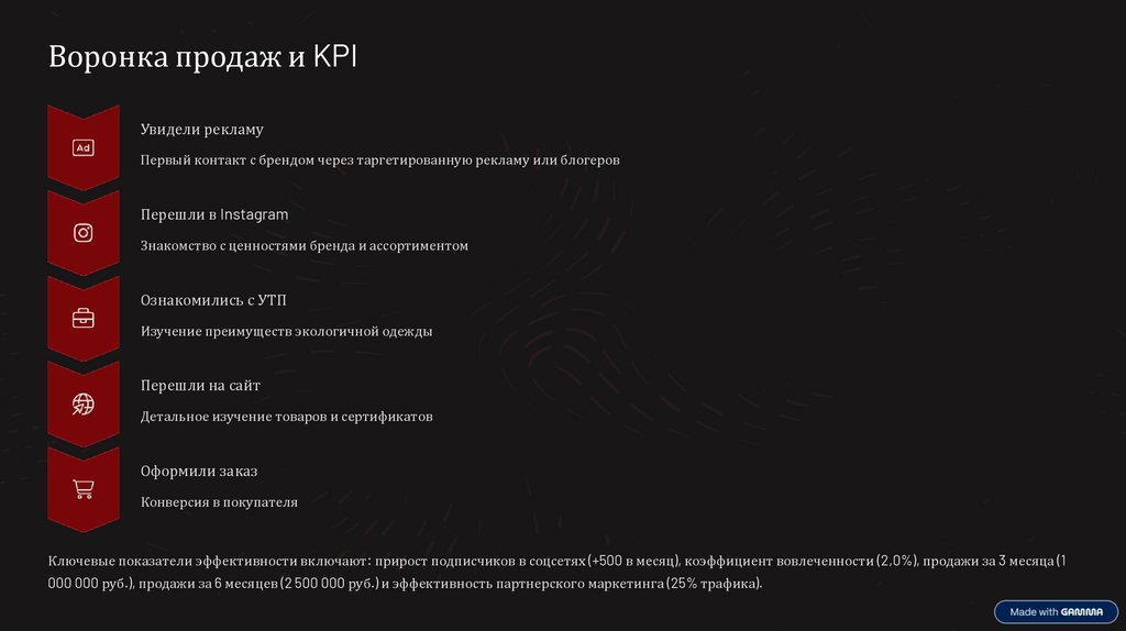 000 000 руб.), продажи за 6 месяцев (2 500 000 руб.) и эффективность партнерского маркетинга (25% трафика).