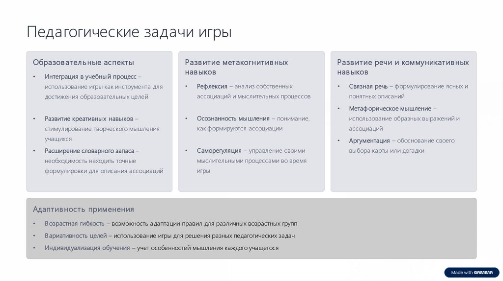 Педагогические задачи игрыОбразовател ь ные аспекты