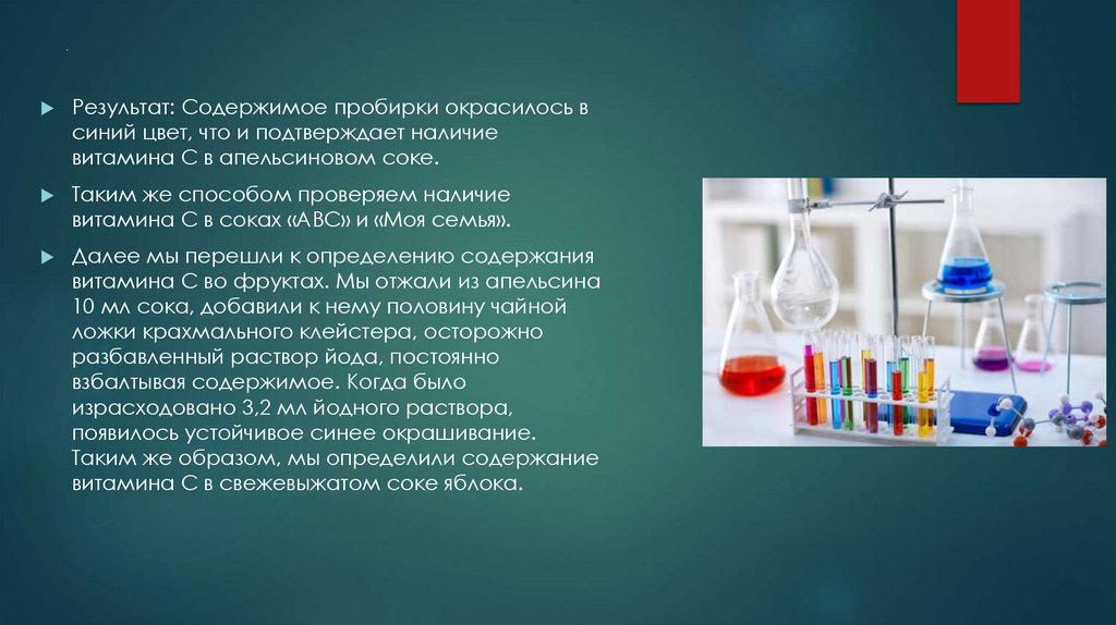 Итак, было определено, что не во всехисследуемых пробах апельсинового