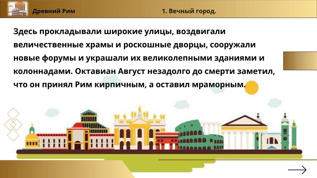 колоннадами. Октавиан Август незадолго до смерти заметил,