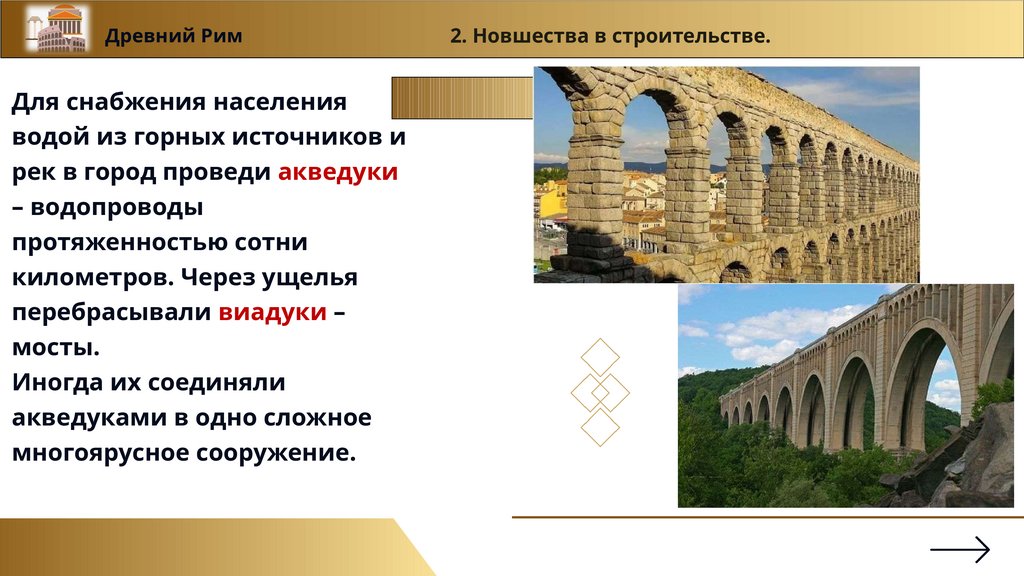 используя акведуки для доставки воды в свои города и отвода сточных вод из