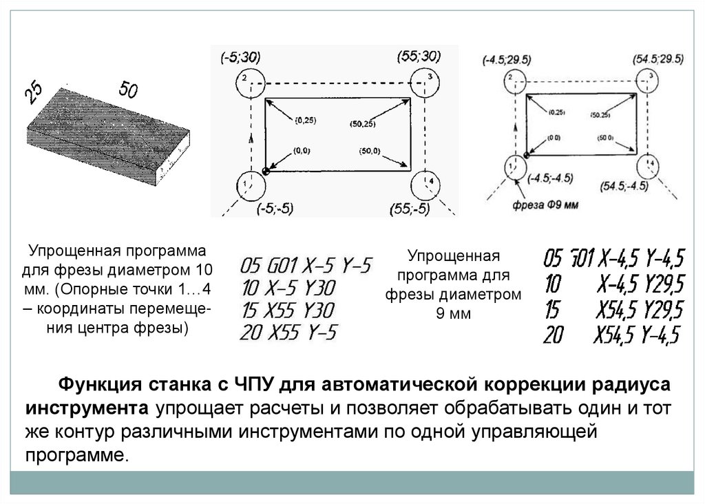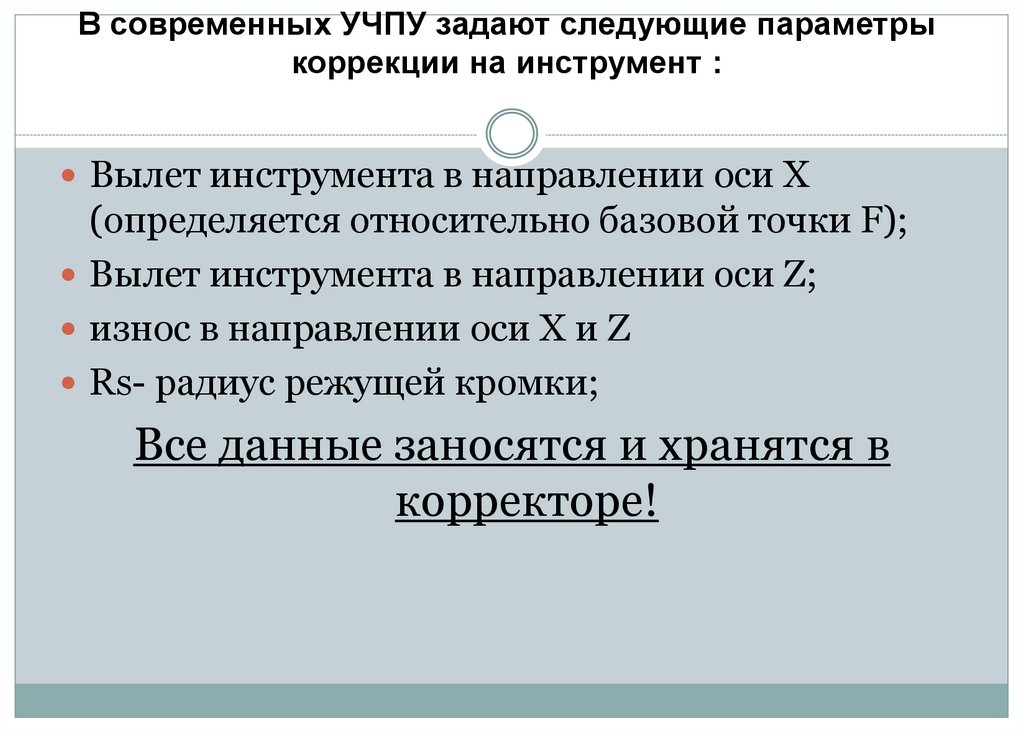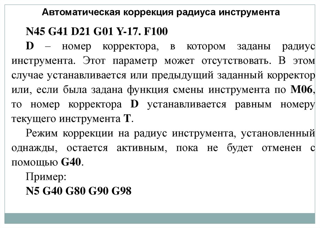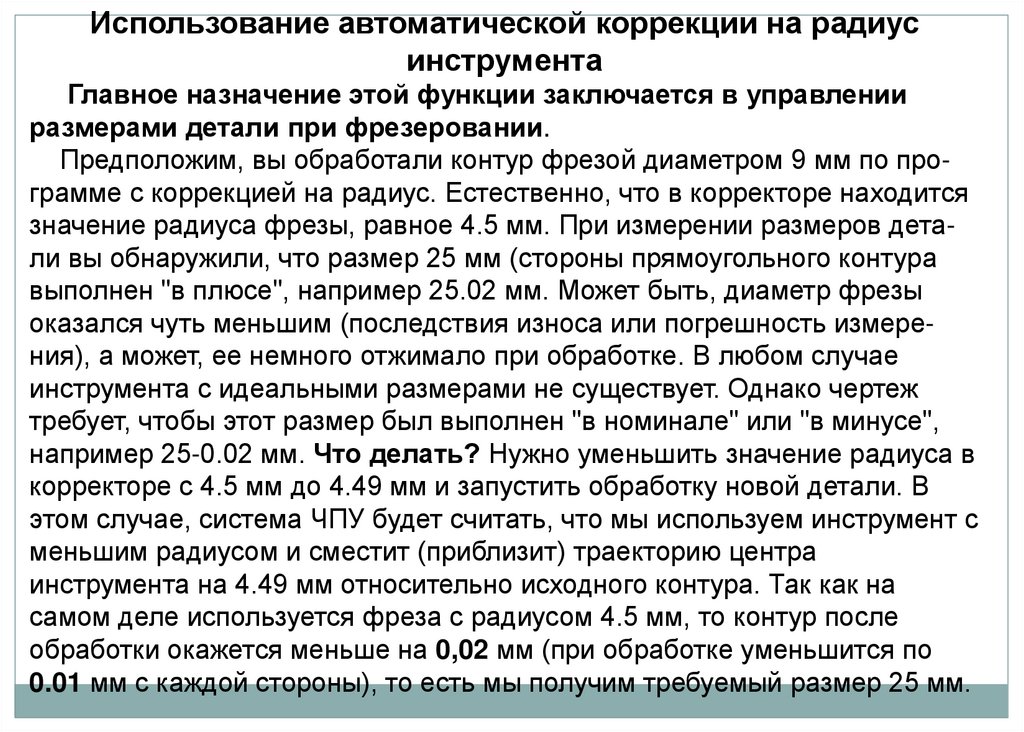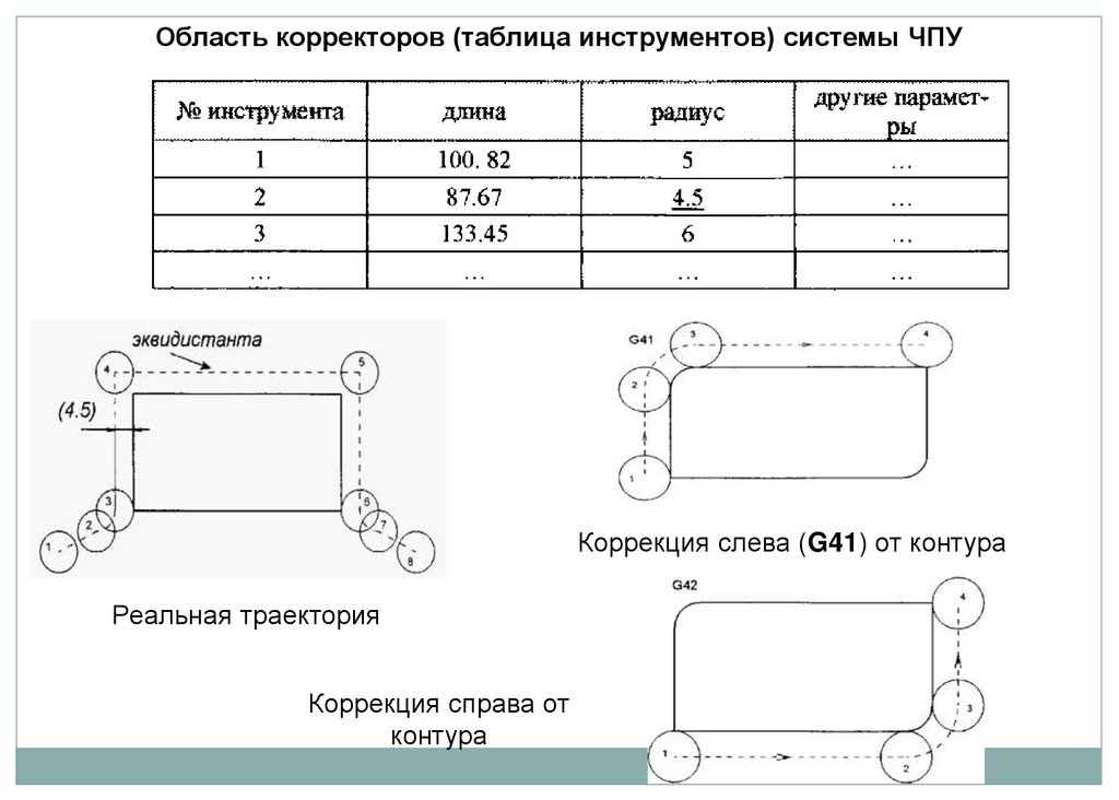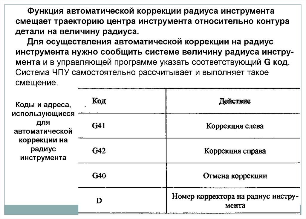 значение радиуса инструмента. В памяти любой современной СЧПУ существует