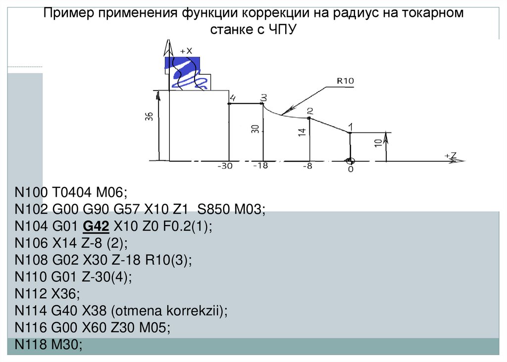 17. Пример применения функции коррекции на радиус на токарном станке с ЧПУ
