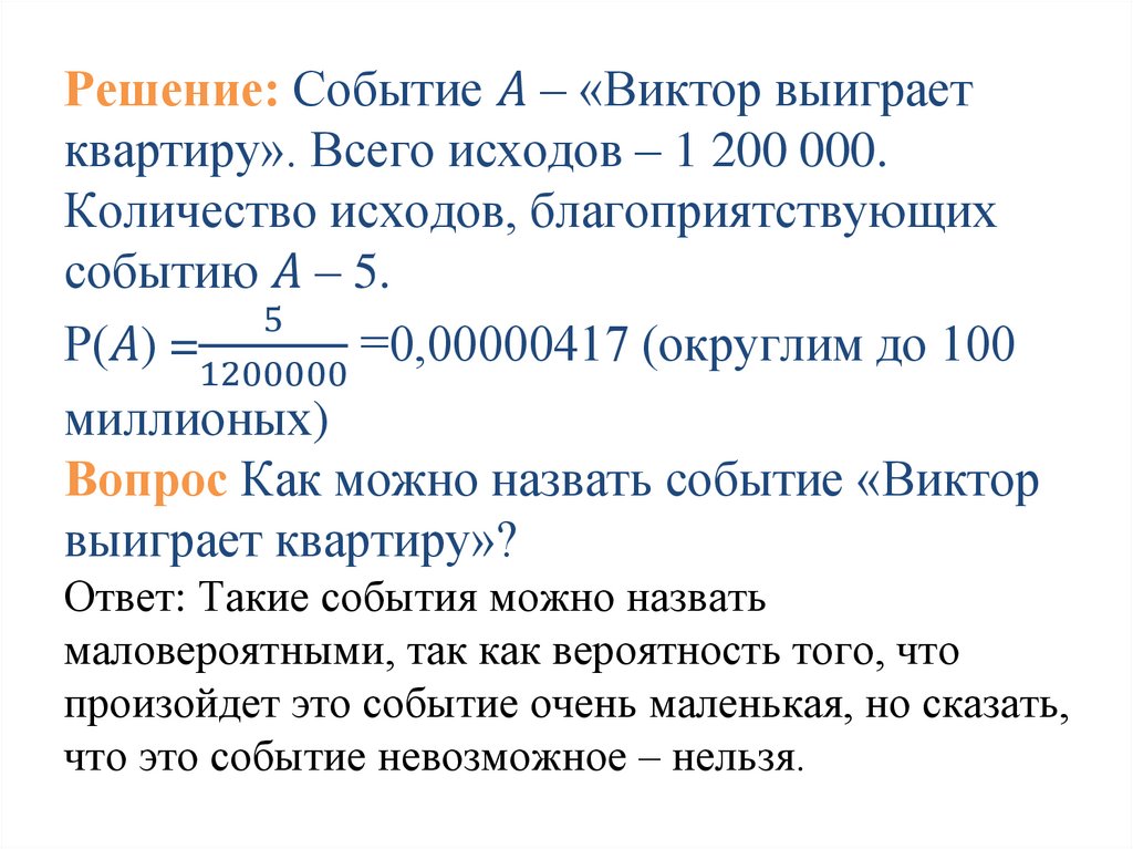 Вероятность и частота события. Роль маловероятных и практически достоверных событий в природе и в обществе