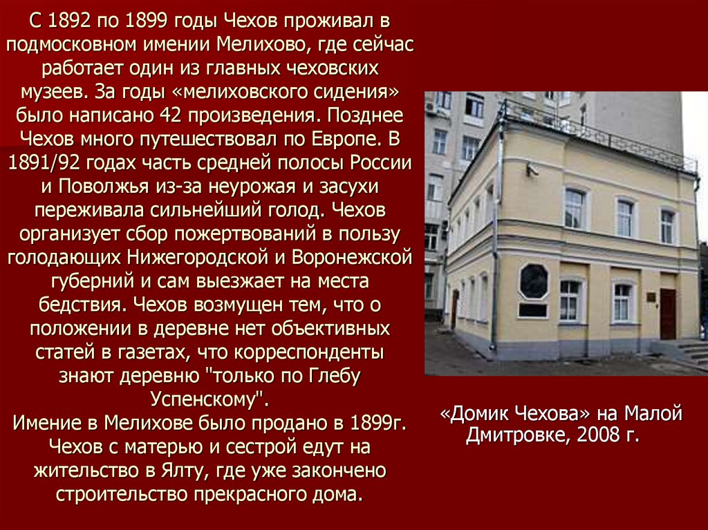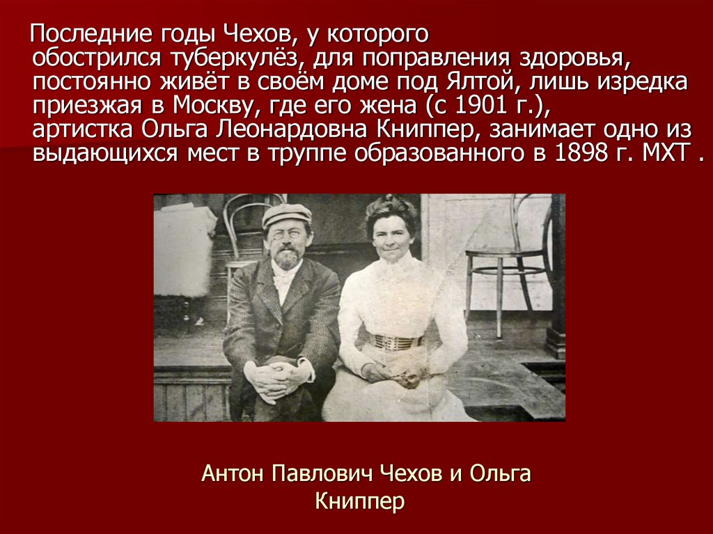 Последние годы Чехов, у которогообострился туберкулёз, для поправления здоровья,