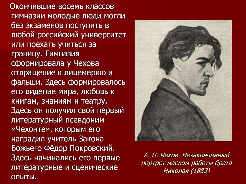 8. А. П. Чехов. Незаконченный портрет маслом работы брата Николая (1883)