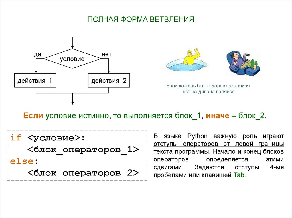 Если условие истинно, то выполняется блок_1, иначе – блок_2.