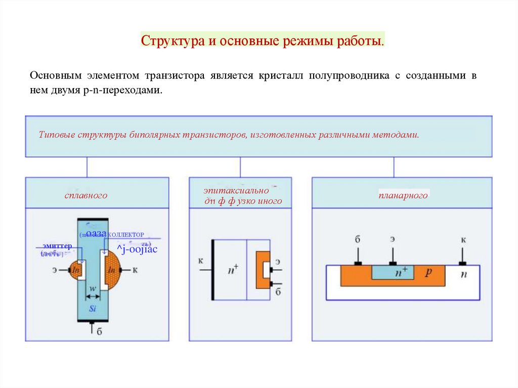 Структура и основные режимы работы.Основным элементом транзистора является кристалл полупроводника с созданными в