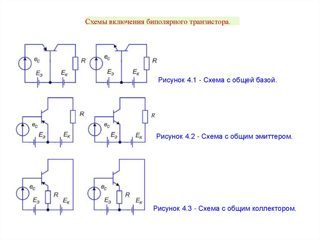 Схемы ключей с общим эмиттером на транзисторах n-p-n-типа и p-n-p-типа