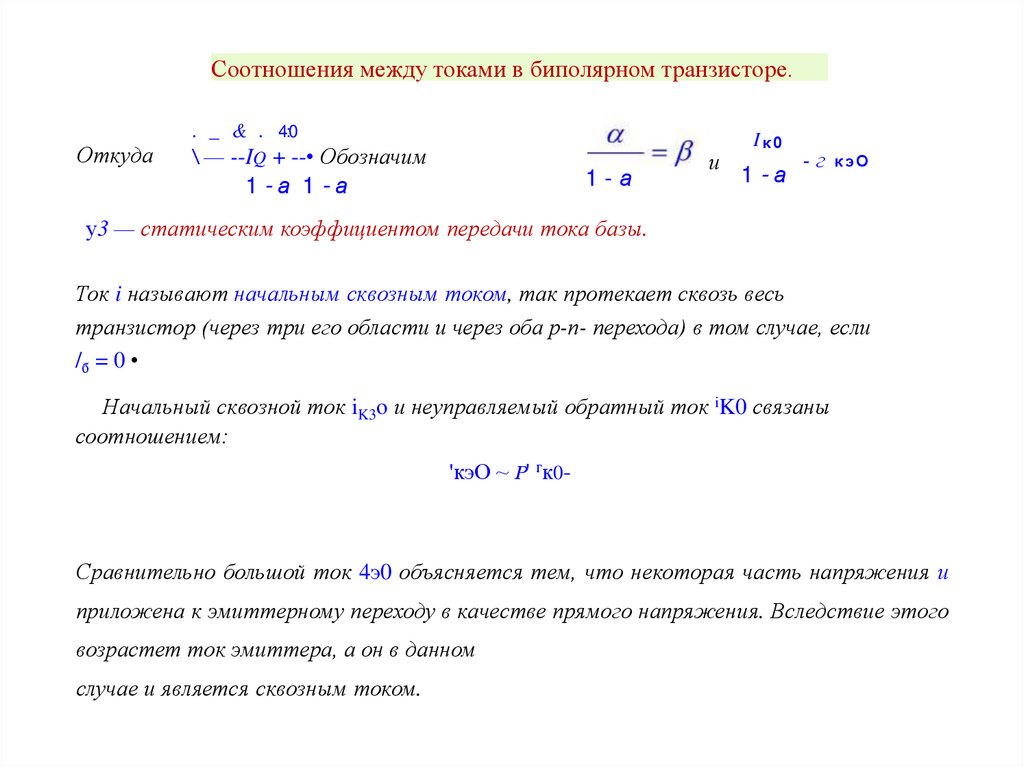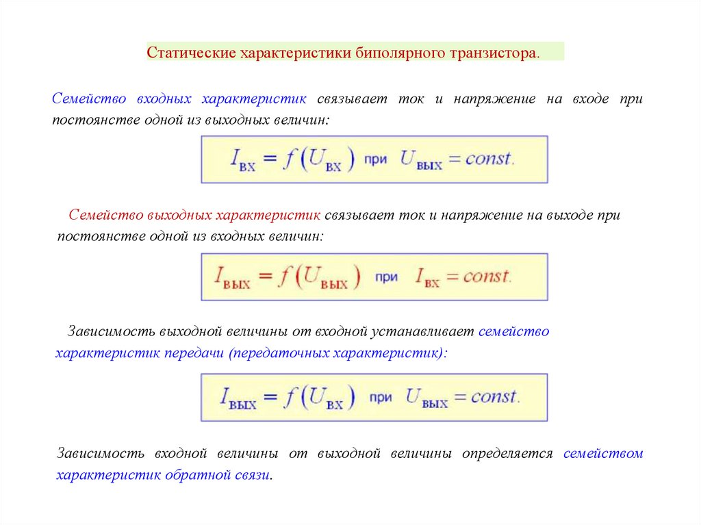 Усилительные свойства биполярного транзистора .Линейная связь между входными и выходными токами и напряжениями транзистора