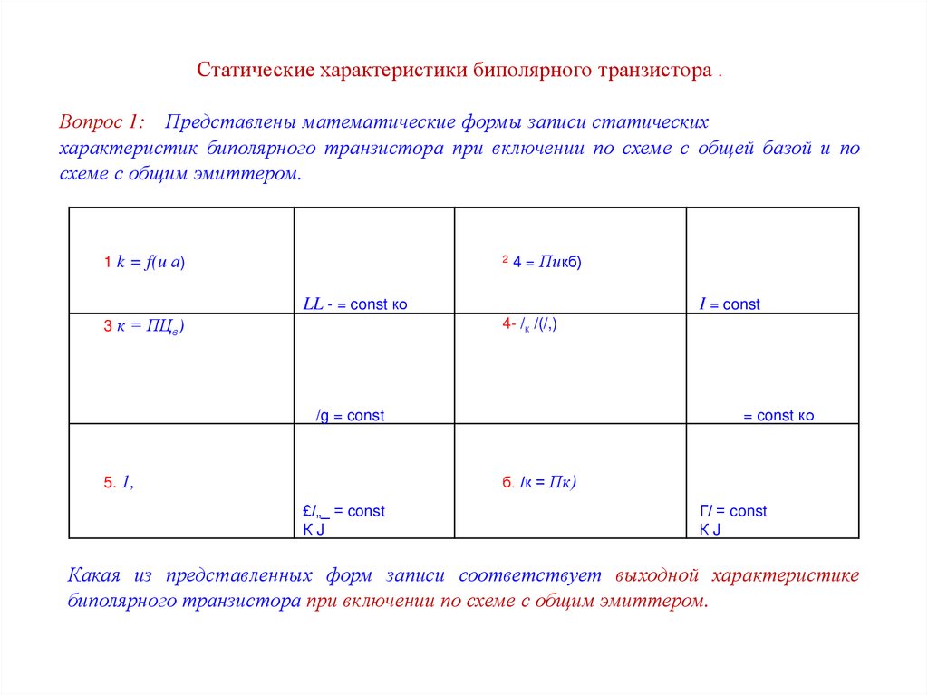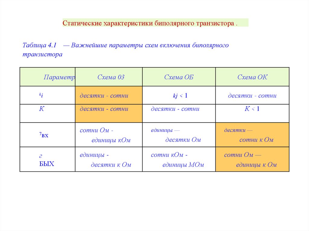 оказываются разными для различных схем включения транзистора, отсутствует связь