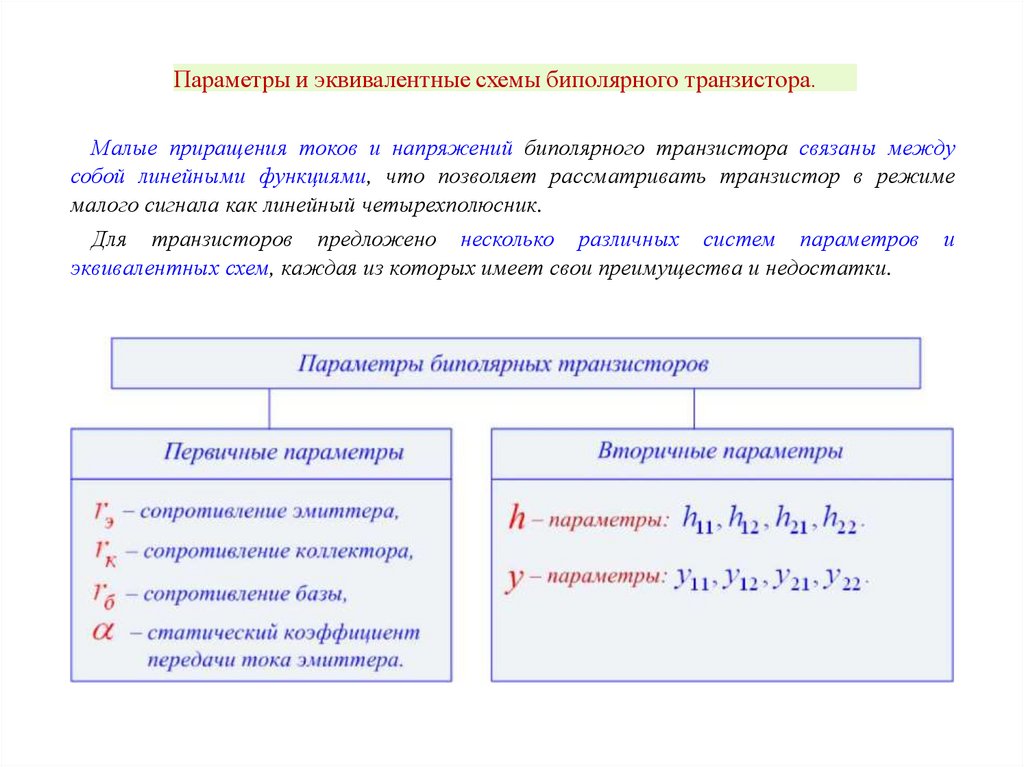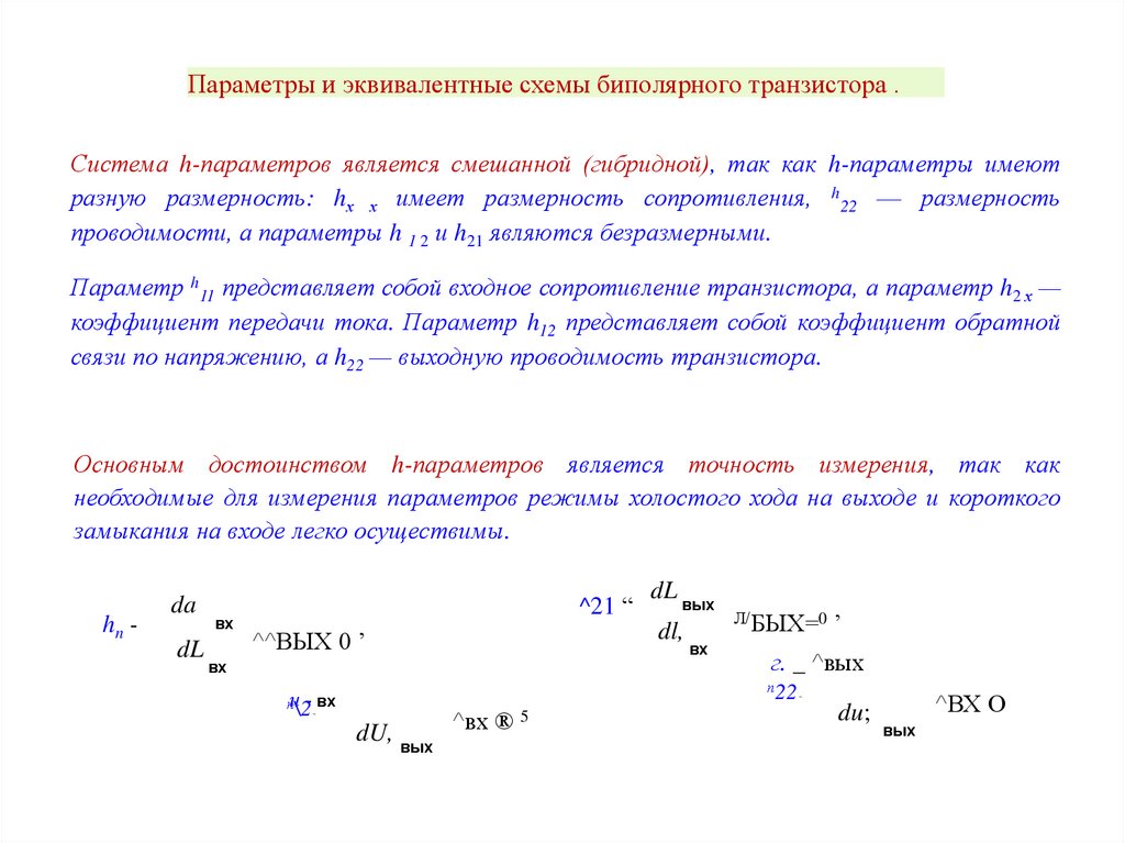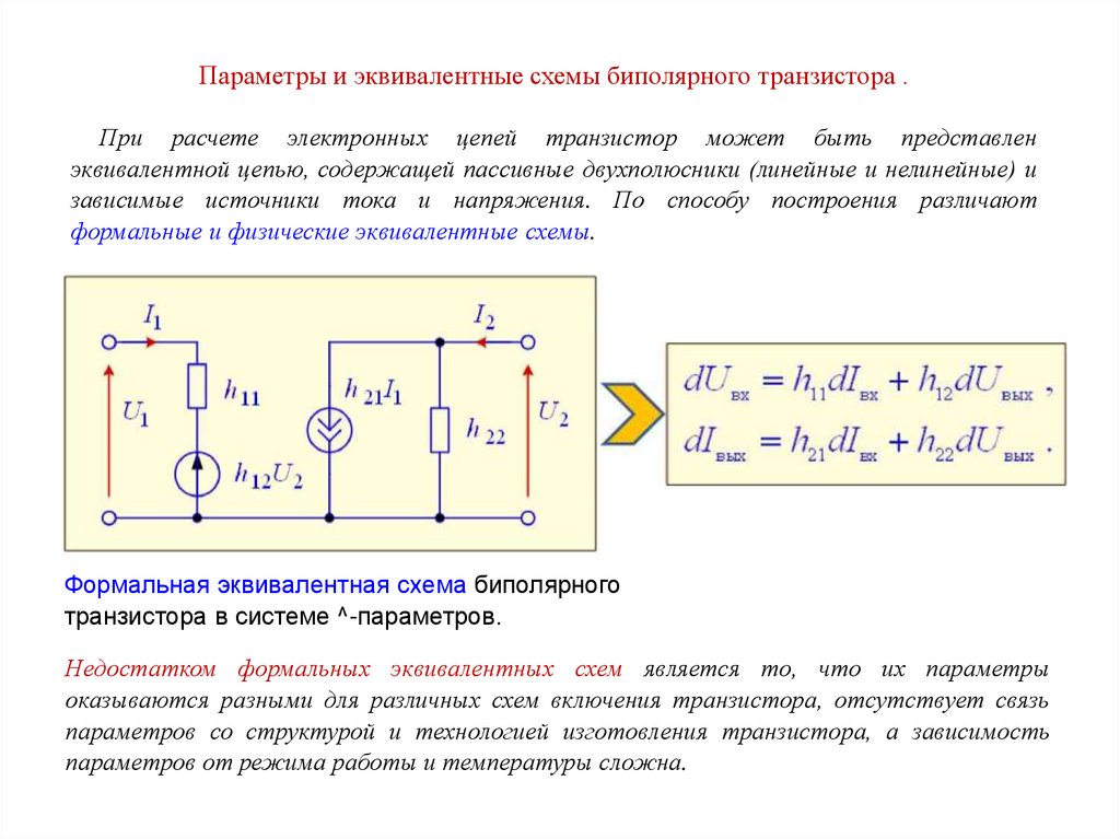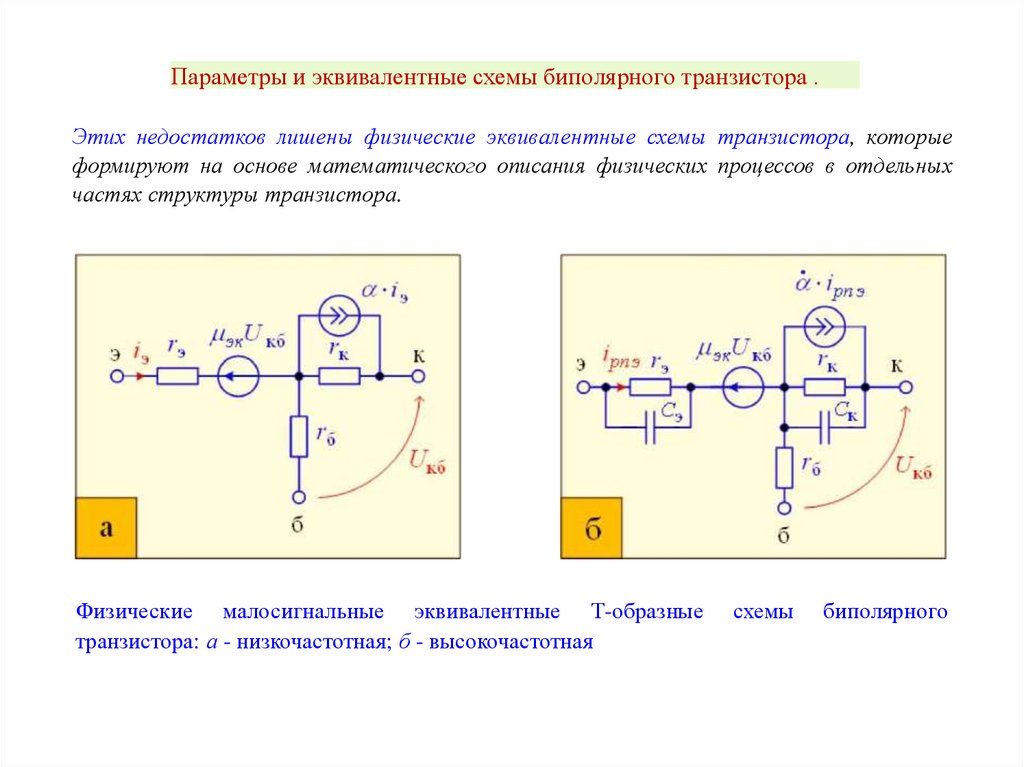 Параметры и эквивалентные схемы биполярного транзистора .Этих недостатков лишены физические эквивалентные схемы транзистора, которые