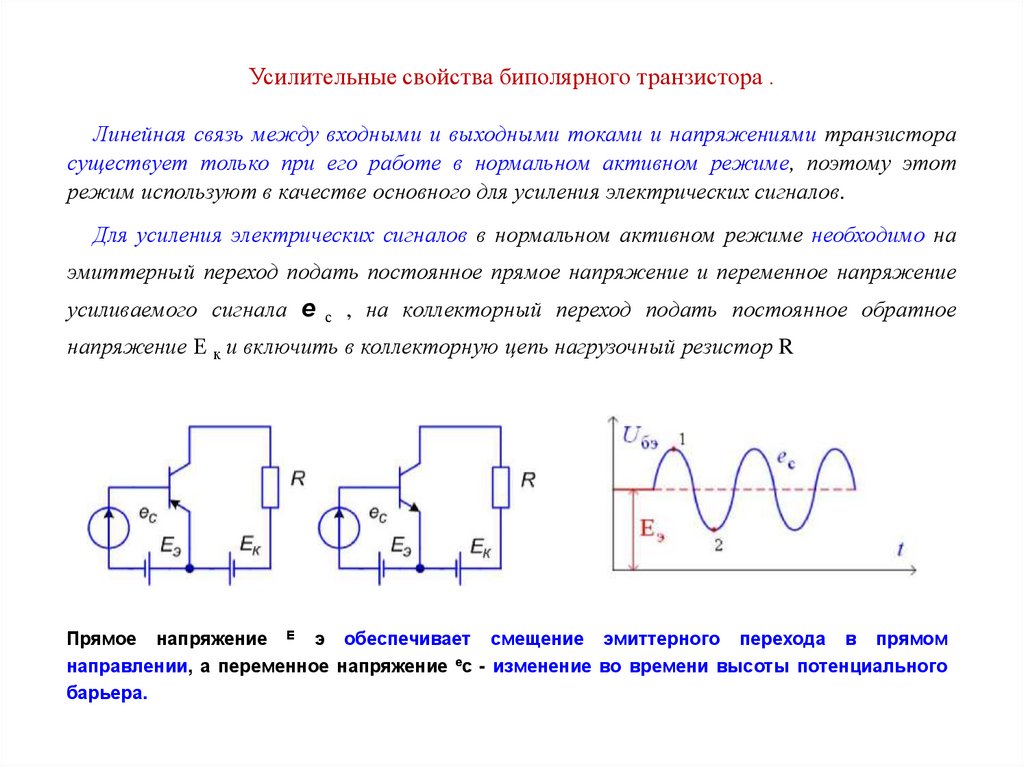 активном режиме. При этом транзистор выполняет функции активного элемента