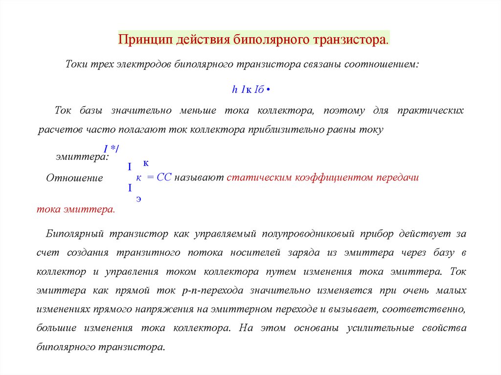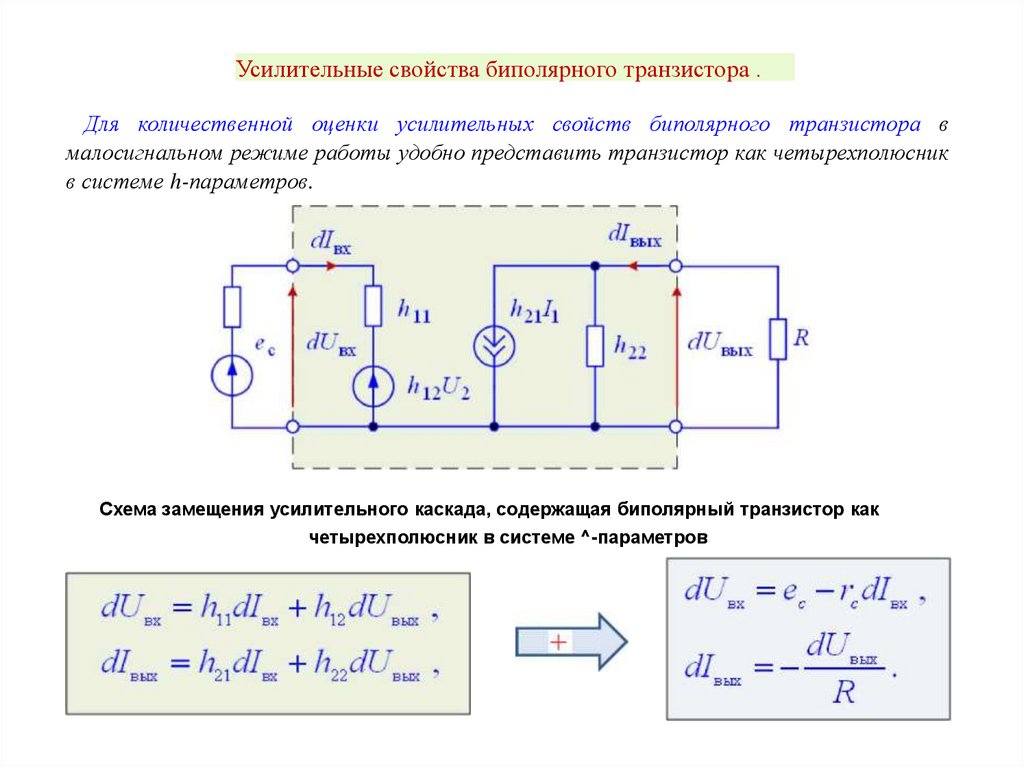 Усилительные свойства биполярного транзистора .Для количественной оценки усилительных свойств биполярного транзистора в