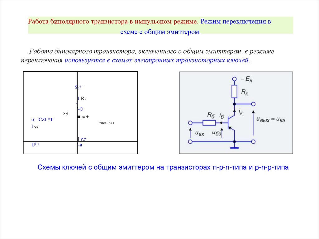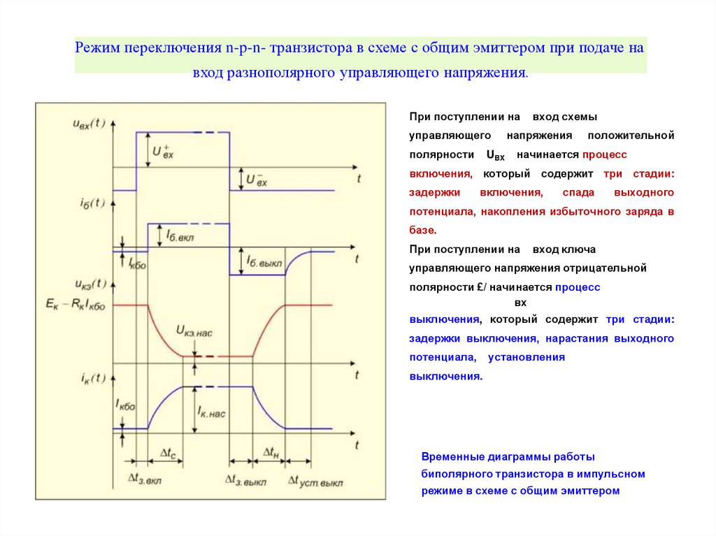 Работа биполярного транзистора в импульсном режиме. Режим переключения всхеме с общим эмиттером.