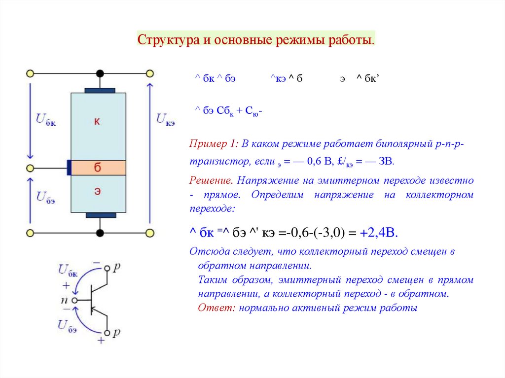 ^ бэ Сбк + СюПример 1: В каком режиме работает биполярный р-п-р-