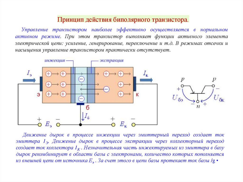 Принцип действия биполярного транзистора.Управление транзистором наиболее эффективно осуществляется в нормальном