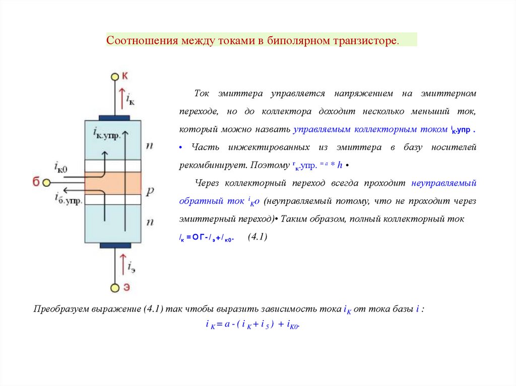 Взаимодействие p-n-переходов биполярного транзистора проявляется в том, что ток
