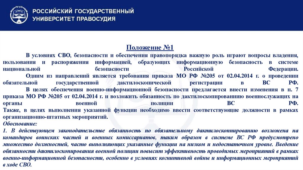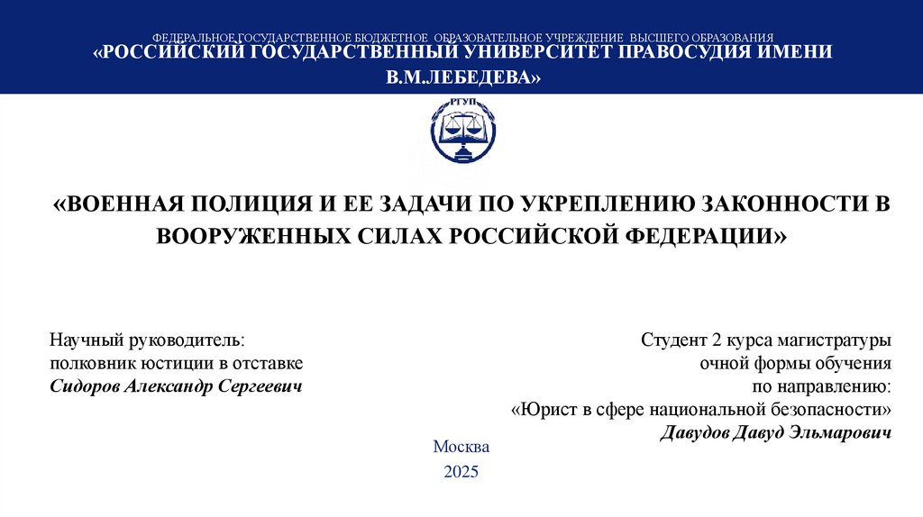 1. «ВОЕННАЯ ПОЛИЦИЯ И ЕЕ ЗАДАЧИ ПО УКРЕПЛЕНИЮ ЗАКОННОСТИ В ВООРУЖЕННЫХ СИЛАХ РОССИЙСКОЙ ФЕДЕРАЦИИ»