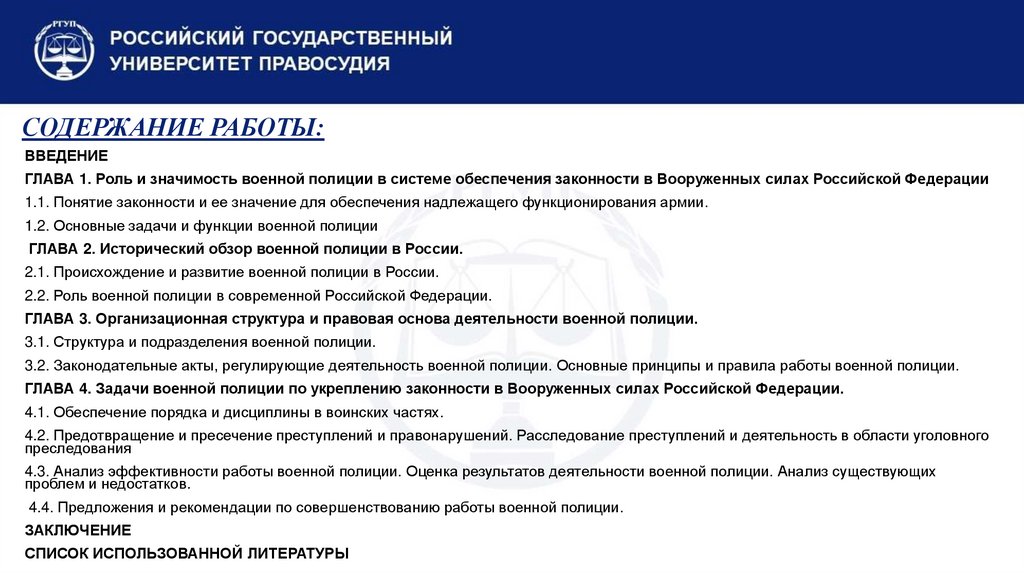 ВВЕДЕНИЕГЛАВА 1. Роль и значимость военной полиции в системе обеспечения законности в Вооруженных силах Российской Федерации