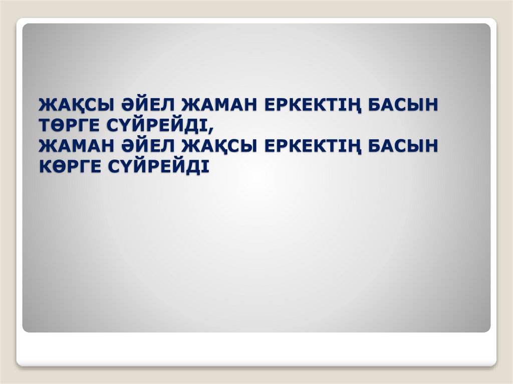6. ЖАҚСЫ ӘЙЕЛ ЖАМАН ЕРКЕКТІҢ БАСЫН ТӨРГЕ СҮЙРЕЙДІ, ЖАМАН ӘЙЕЛ ЖАҚСЫ ЕРКЕКТІҢ БАСЫН КӨРГЕ СҮЙРЕЙДІ