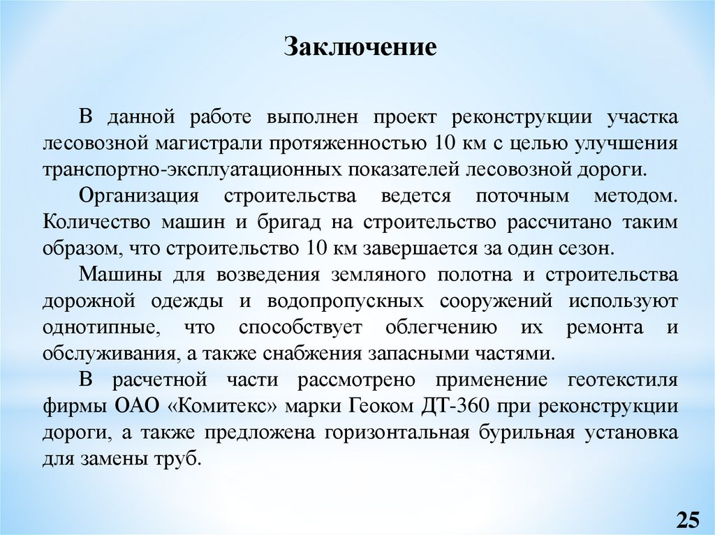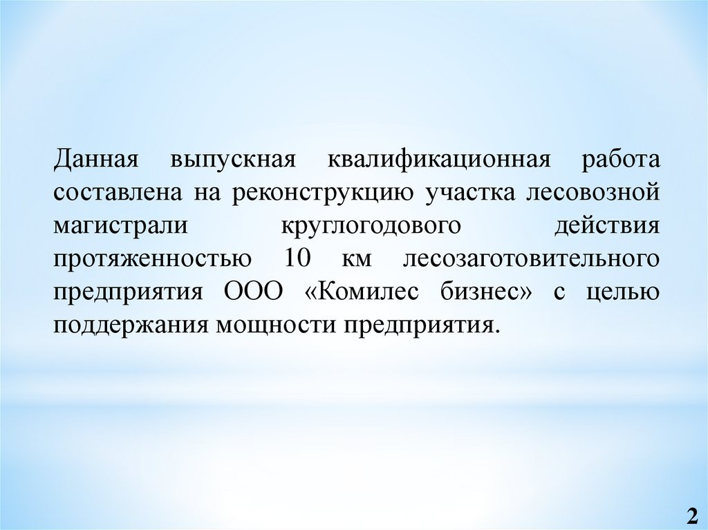 Данная выпускная квалификационная работасоставлена на реконструкцию участка лесовозной