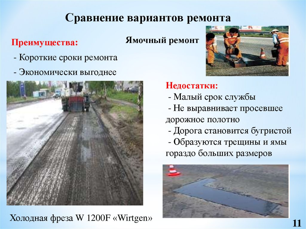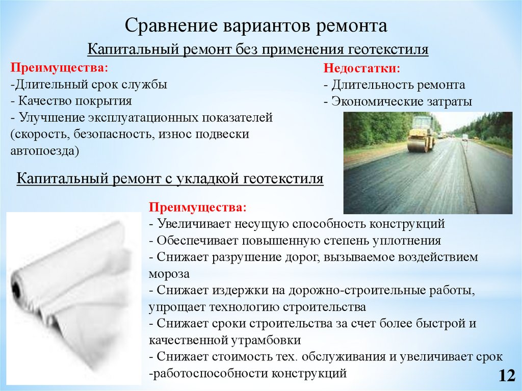 Сравнение вариантов ремонтаПреимущества: