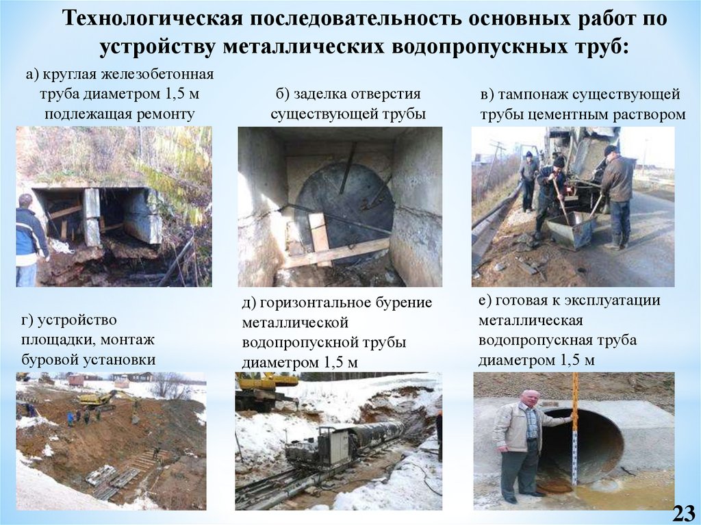 Технологическая последовательность основных работ поустройству металлических водопропускных труб: