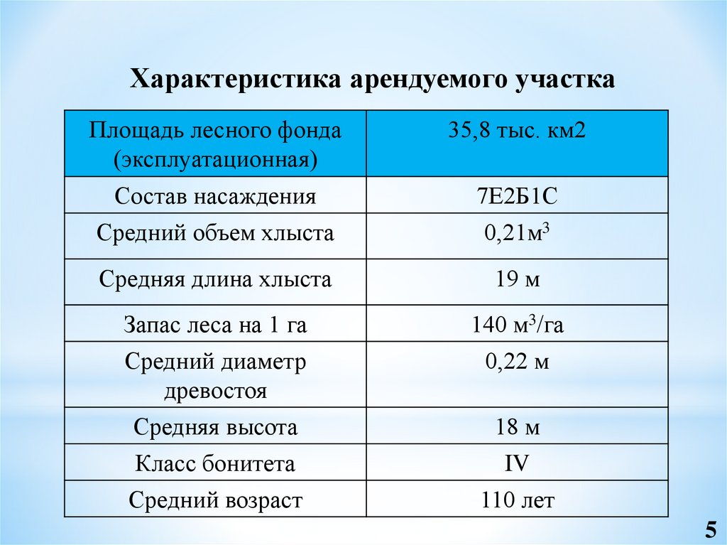 Характеристика арендуемого участкаПлощадь лесного фонда