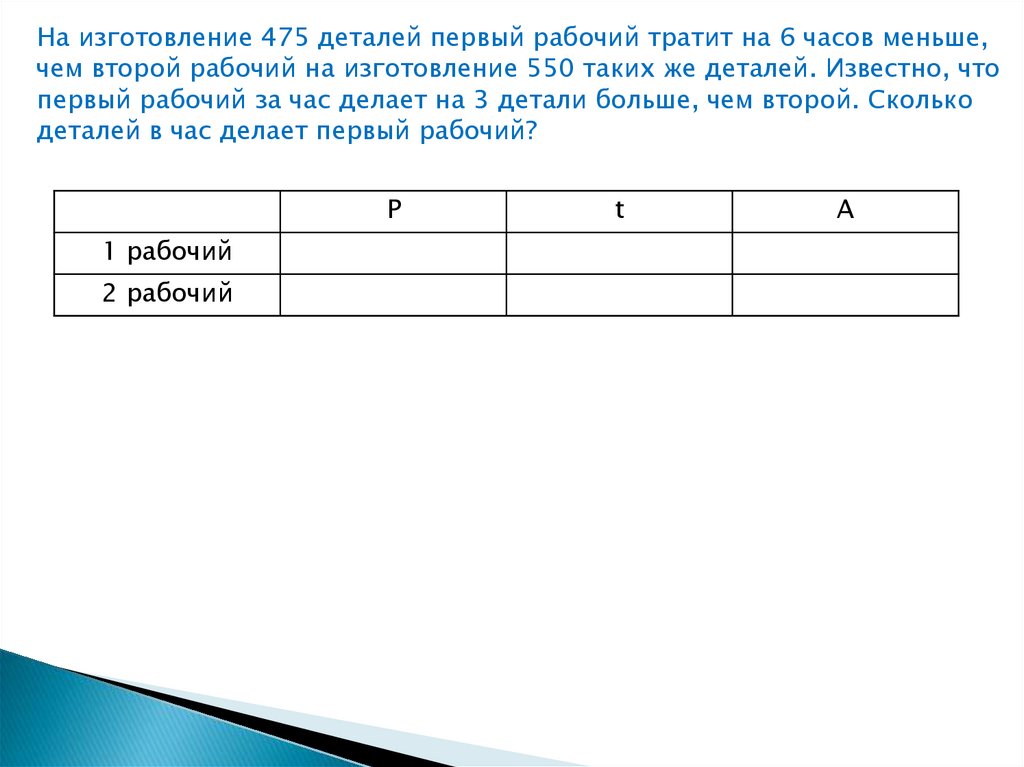 I этап - перевод условий задачи на математическийязык (выделяются необходимые для решения данные и