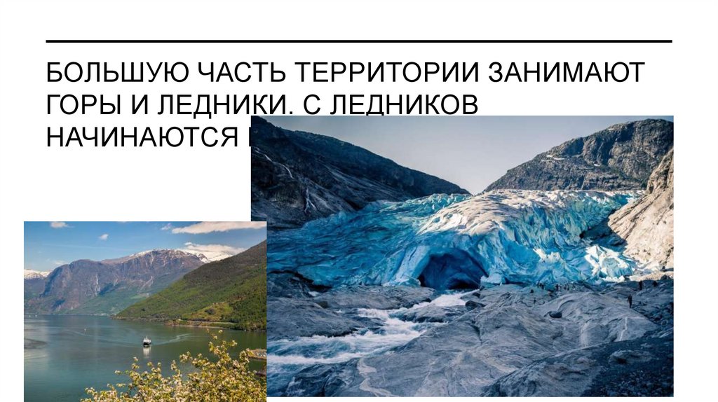 3. БОЛЬШУЮ ЧАСТЬ ТЕРРИТОРИИ ЗАНИМАЮТ ГОРЫ И ЛЕДНИКИ. С ЛЕДНИКОВ НАЧИНАЮТСЯ ГОРНЫЕ РЕКИ