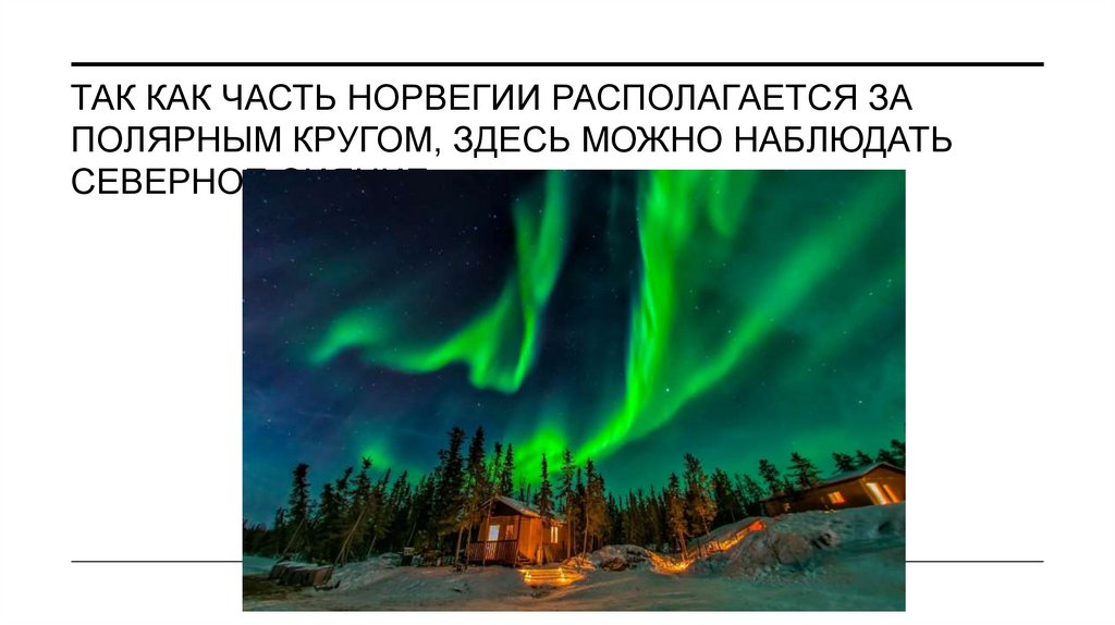 6. ТАК КАК ЧАСТЬ НОРВЕГИИ РАСПОЛАГАЕТСЯ ЗА ПОЛЯРНЫМ КРУГОМ, ЗДЕСЬ МОЖНО НАБЛЮДАТЬ СЕВЕРНОЕ СИЯНИЕ.