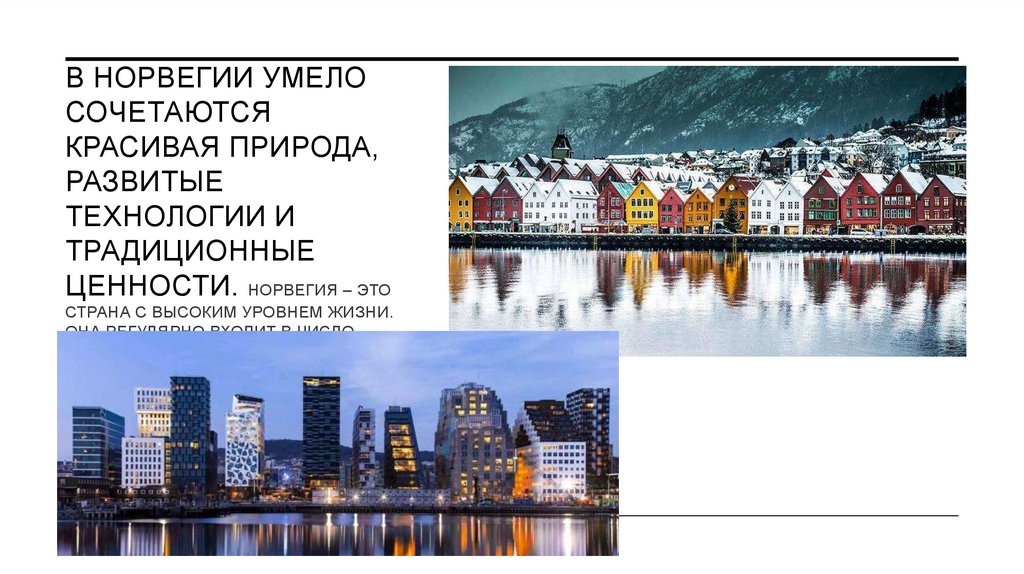 8. В НОРВЕГИИ УМЕЛО СОЧЕТАЮТСЯ КРАСИВАЯ ПРИРОДА, РАЗВИТЫЕ ТЕХНОЛОГИИ И ТРАДИЦИОННЫЕ ЦЕННОСТИ. Норвегия – это страна с высоким