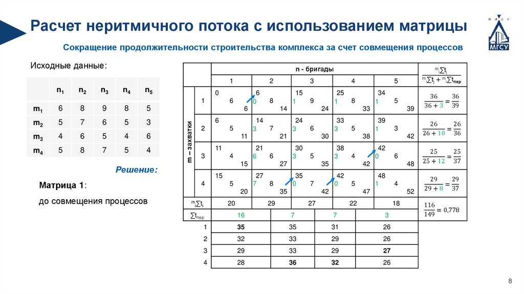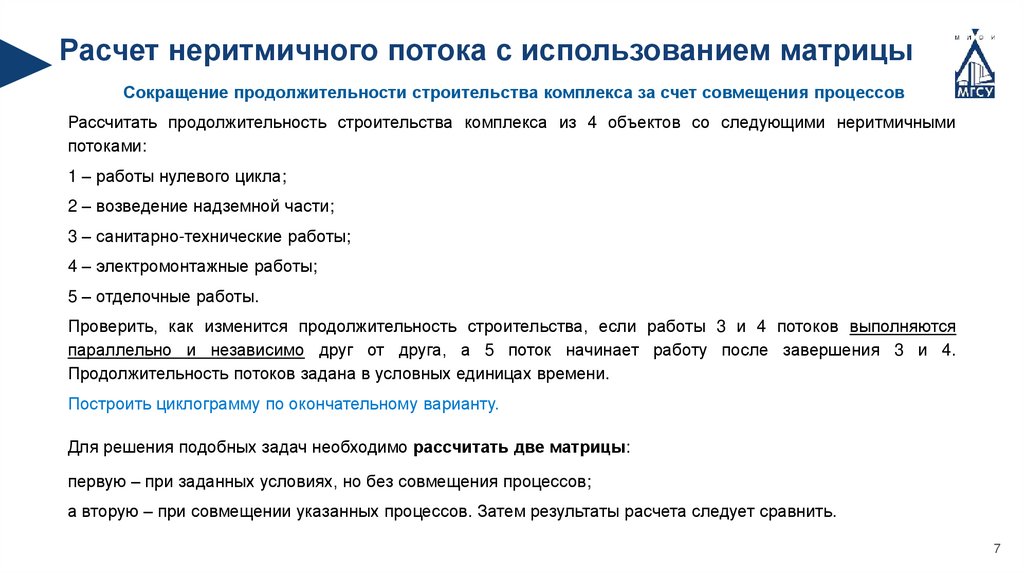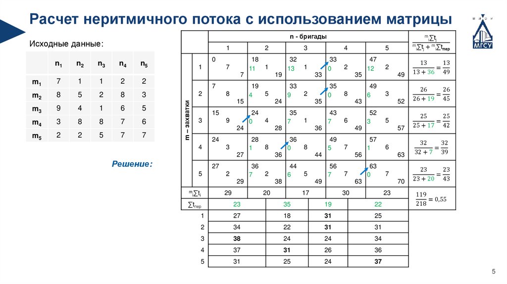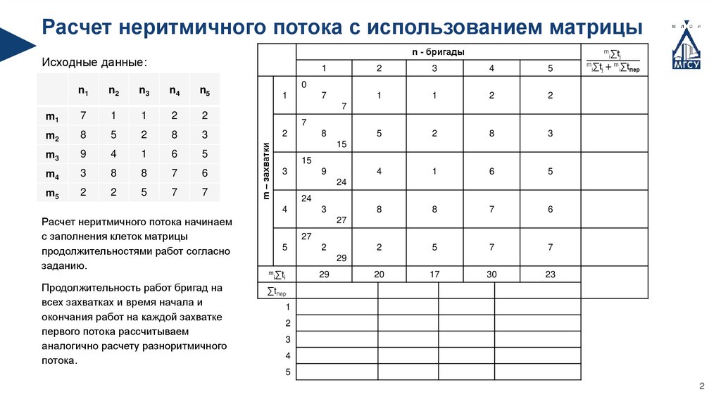 Расчет потоков с использованием матриц. Неритмичные потокиНИУ МГСУ 2025