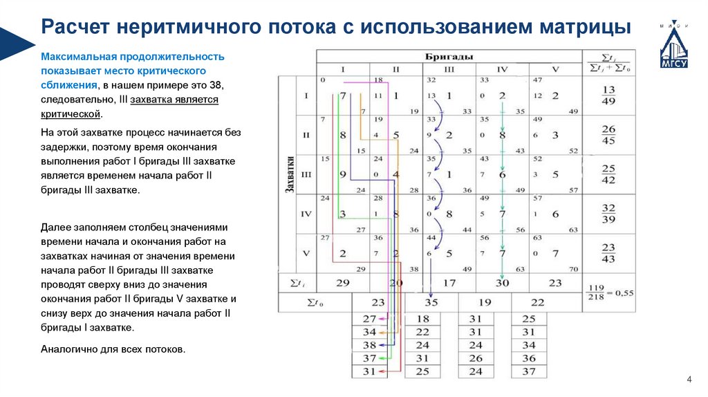 Расчет неритмичного потока с использованием матрицыn - бригады