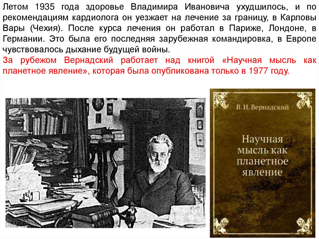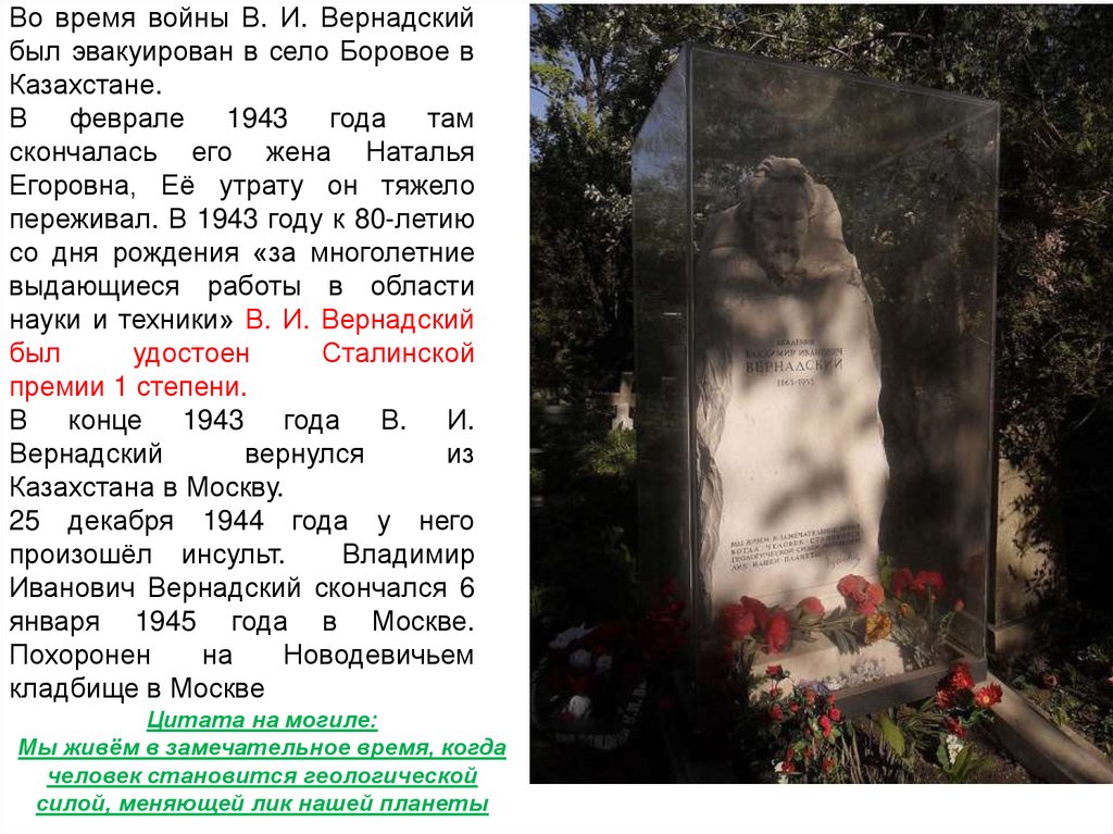Научная работа В. И. Вернадского оказала значительное влияние на развитие науко Земле, академий наук России, Украины, а также на мировоззрение людей в