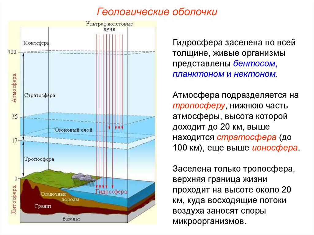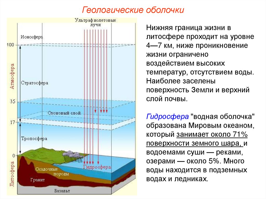 проникает во всю гидросферу, верхнюю часть литосферы и нижнюю