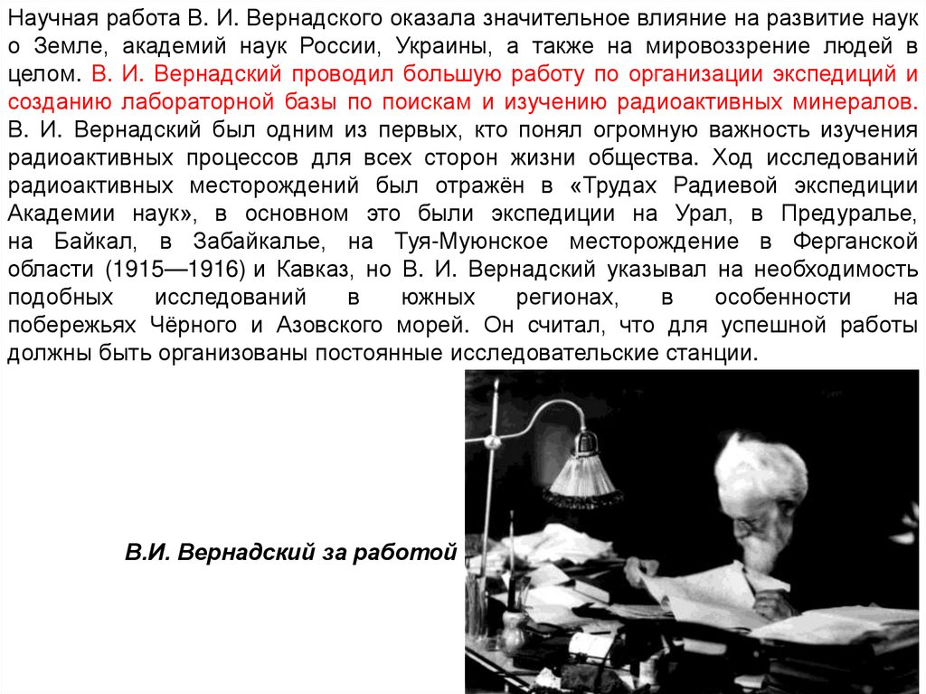 В. И. Вернадский был одним из первых, кто понял огромную важность изучения