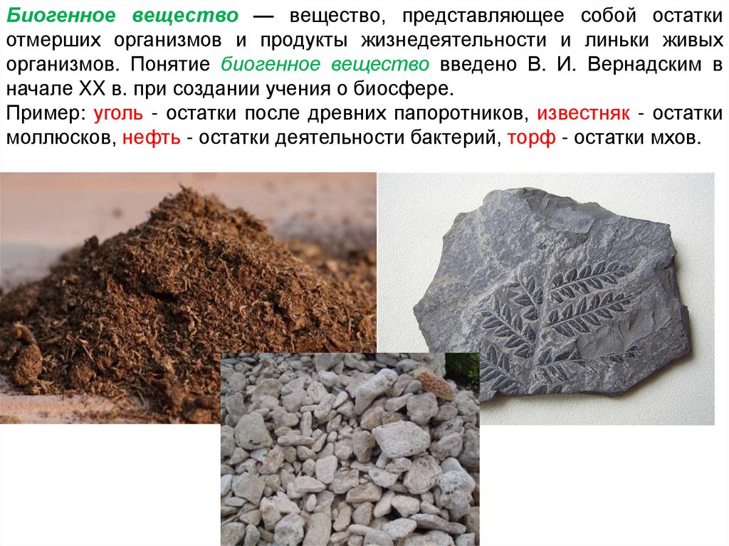 организмов. Понятие биогенное вещество введено В. И. Вернадским в
