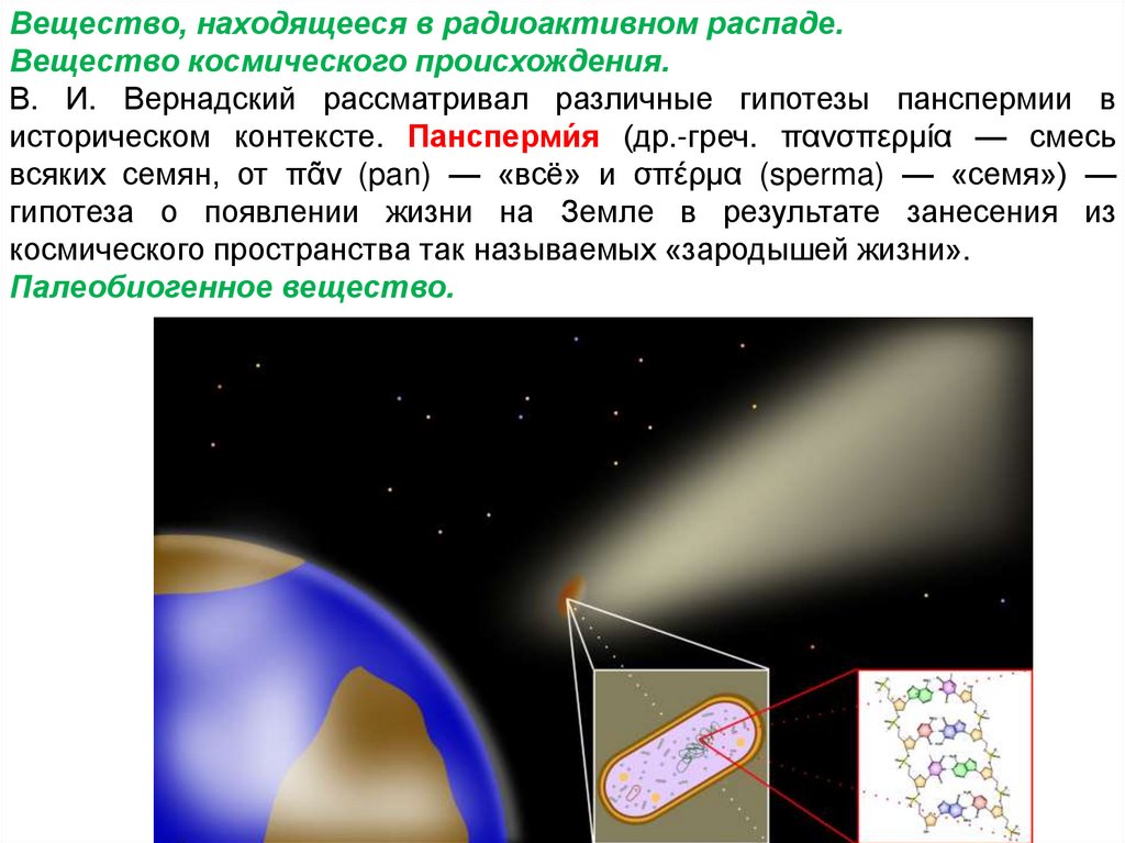 В. И. Вернадский рассматривал различные гипотезы панспермии в